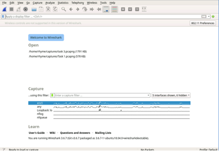 A packet capture from ethernet port 80, the use of display filters, saving the captures, and reviewing a handshake with TCP protocol.